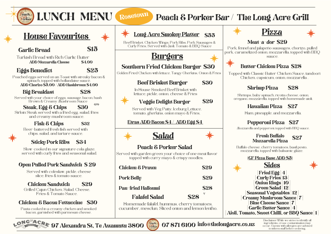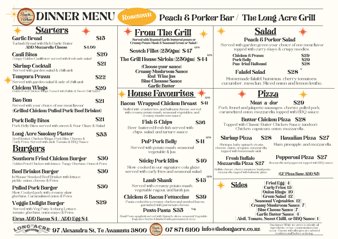 Welcome to The Long Acre Restaurant/Peach and Porker Bar, a culinary gem nestled in the heart of Te Awamutu. Located at 97 Alexandra Street, this restaurant prides itself on delivering exceptional service and mouthwatering dishes that keep diners returning for more. Customers rave about the delightful 'Tea Pot' experience, perfect for sharing among friends, while the menu boasts a range of options from perfectly cooked beef schnitzels to delectable pork belly salads.